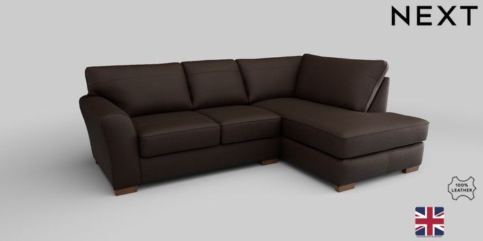 6.12.1 Buy Michigan Leather Small Corner Chaise - Right Hand Turin Leather Dark Brown Slim Block - Mid from the Next UK online shop Click here to use our accessible website