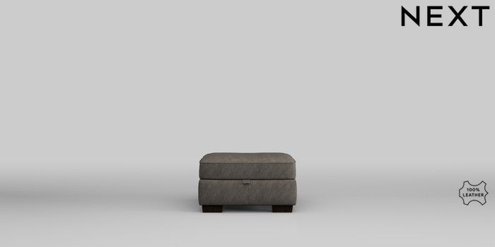 6.12.1 Buy Michigan Leather Storage Footstool Antiqued Leather Grey Small Slim Block - Dark from the Next UK online shop Click here to use our accessible website