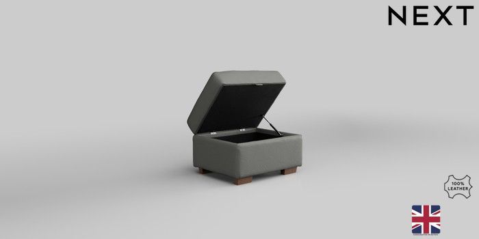 6.12.1 Buy Michigan Leather Storage Footstool Columbia French Grey Small Slim Block - Light from the Next UK online shop Click here to use our accessible website