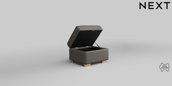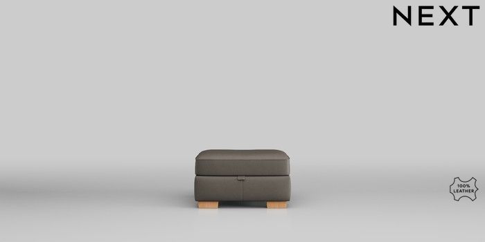 6.12.1 Buy Michigan Leather Storage Footstool Turin Leather French Grey Small Slim Block - Light from the Next UK online shop Click here to use our accessible website