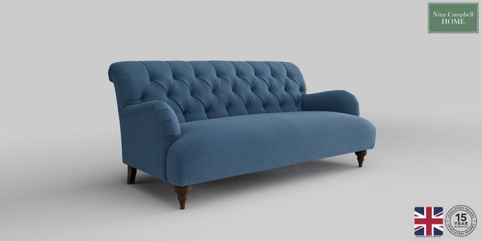 6.12.1 Buy Milner by Nina Campbell 3 Seater Small Sofa Wilbur Chenille Denim Blue Turned - Dark from the Next UK online shop Click here to use our accessible website