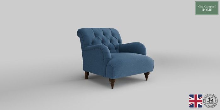 6.12.1 Buy Milner by Nina Campbell Armchair Wilbur Chenille Denim Blue Turned - Dark from the Next UK online shop Click here to use our accessible website