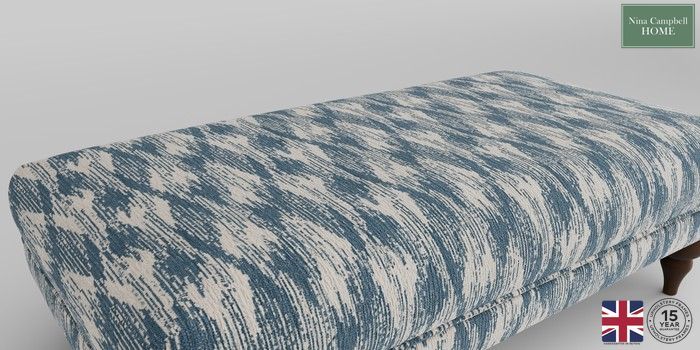 6.12.1 Buy Milner by Nina Campbell Footstool Ezra Ikat Soft Indigo Blue Turned - Dark from the Next UK online shop Click here to use our accessible website