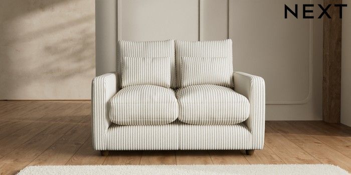 7.2.6 Buy N Premium Farndon Grand Relaxed Sit 2 Seater Small Sofa Chenille Stripe Moss Green Wooden Glide - Mid from the Next UK online shop Click here to use our accessible website