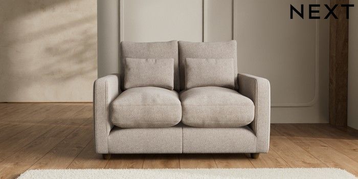 7.2.6 Buy N Premium Farndon Grand Relaxed Sit 2 Seater Small Sofa Chunky Chenille Light Dove Wooden Glide - Mid from the Next UK online shop Click here to use our accessible website