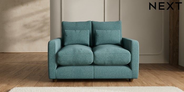 7.2.6 Buy N Premium Farndon Grand Relaxed Sit 2 Seater Small Sofa Chunky Chenille Mid Teal Green Wooden Glide - Mid from the Next UK online shop Click here to use our accessible website