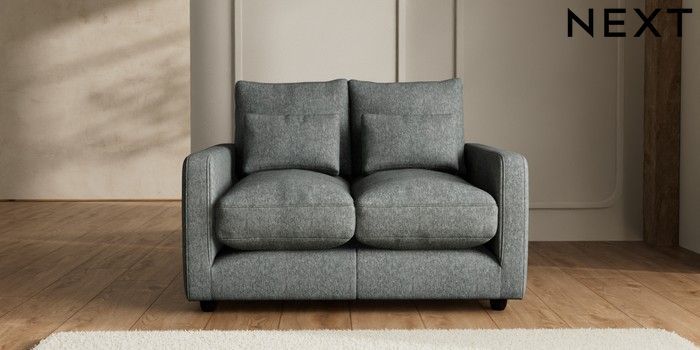 7.2.6 Buy N Premium Farndon Grand Relaxed Sit 2 Seater Small Sofa Cotswold Chenille Dark Grey Wooden Glide - Dark from the Next UK online shop Click here to use our accessible website