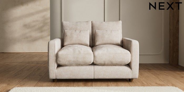 7.2.6 Buy N Premium Farndon Grand Relaxed Sit 2 Seater Small Sofa Distressed Velour Mid Natural Wooden Glide - Mid from the Next UK online shop Click here to use our accessible website