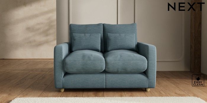 7.2.6 Buy N Premium Farndon Grand Relaxed Sit 2 Seater Small Sofa Fine Chenille Easy Clean Mid Blue Wooden Glide - Light from the Next UK online shop Click here to use our accessible website