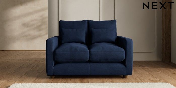 7.2.6 Buy N Premium Farndon Grand Relaxed Sit 2 Seater Small Sofa Luxe Chenille Navy Blue Wooden Glide - Mid from the Next UK online shop Click here to use our accessible website