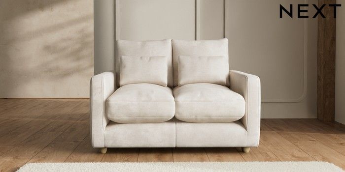 7.2.6 Buy N Premium Farndon Grand Relaxed Sit 2 Seater Small Sofa Plush Chenille Oyster Wooden Glide - Light from the Next UK online shop Click here to use our accessible website