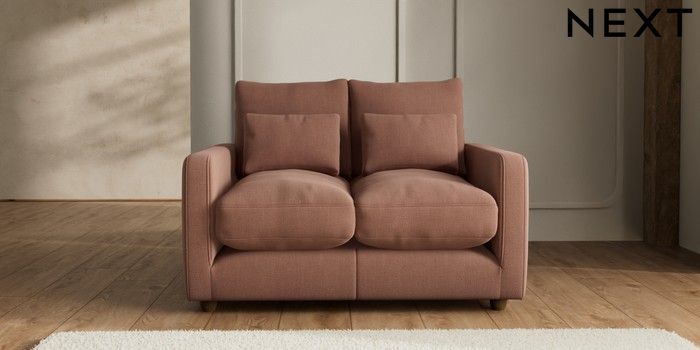 7.2.6 Buy N Premium Farndon Grand Relaxed Sit 2 Seater Small Sofa Relaxed Linen Look Light Rust Brown Wooden Glide - Mid from the Next UK online shop Click here to use our accessible website