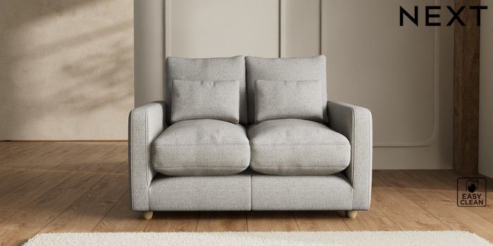 7.2.6 Buy N Premium Farndon Grand Relaxed Sit 2 Seater Small Sofa Woven Chenille Easy Clean Light Grey Wooden Glide - Light from the Next UK online shop Click here to use our accessible website
