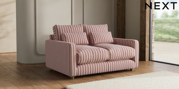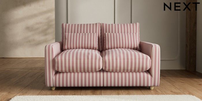 7.3.1 Buy N Premium Farndon Grand Relaxed Sit 2 Seater Sofa Bold Chenille Stripe Dark Pink Wooden Glide - Light from the Next UK online shop Click here to use our accessible website