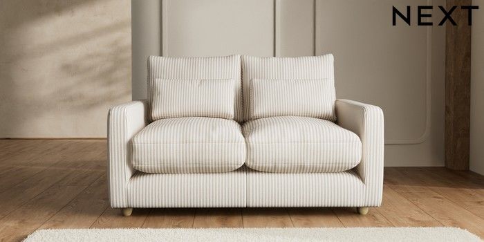 7.2.6 Buy N Premium Farndon Grand Relaxed Sit 2 Seater Sofa Chenille Stripe Natural Wooden Glide - Light from the Next UK online shop Click here to use our accessible website