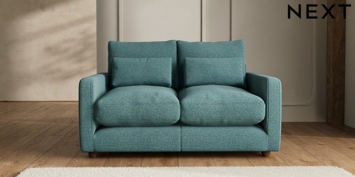 7.2.6 Buy N Premium Farndon Grand Relaxed Sit 2 Seater Sofa Chunky Chenille Mid Teal Green Wooden Glide - Mid from the Next UK online shop Click here to use our accessible website