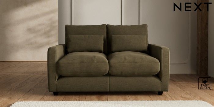 7.2.6 Buy N Premium Farndon Grand Relaxed Sit 2 Seater Sofa Fine Chenille Easy Clean Dark Moss Green Wooden Glide - Dark from the Next UK online shop Click here to use our accessible website