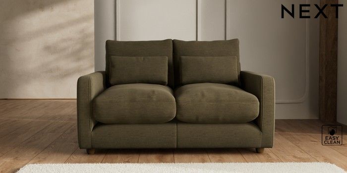 7.2.6 Buy N Premium Farndon Grand Relaxed Sit 2 Seater Sofa Fine Chenille Easy Clean Dark Moss Green Wooden Glide - Mid from the Next UK online shop Click here to use our accessible website