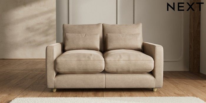 7.2.6 Buy N Premium Farndon Grand Relaxed Sit 2 Seater Sofa Luxe Chenille Mid Camel Beige Wooden Glide - Light from the Next UK online shop Click here to use our accessible website