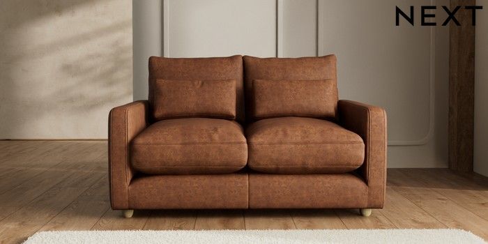 7.2.6 Buy N Premium Farndon Grand Relaxed Sit 2 Seater Sofa Monza Faux Leather Easy Clean Chestnut Brown Wooden Glide - Light from the Next UK online shop Click here to use our accessible website