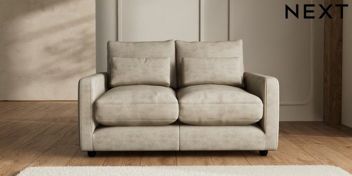 7.2.6 Buy N Premium Farndon Grand Relaxed Sit 2 Seater Sofa Monza Faux Leather Easy Clean Mink Brown Wooden Glide - Dark from the Next UK online shop Click here to use our accessible website