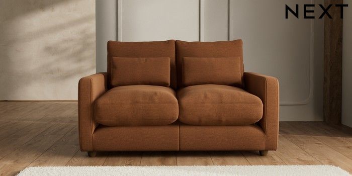 7.2.6 Buy N Premium Farndon Grand Relaxed Sit 2 Seater Sofa Ripple Chenille Mid Rust Brown Wooden Glide - Mid from the Next UK online shop Click here to use our accessible website