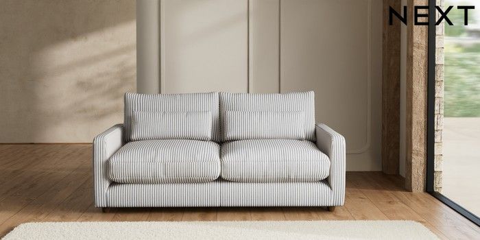 7.2.6 Buy N Premium Farndon Grand Relaxed Sit 3 Seater Sofa Chenille Stripe Slate Blue Wooden Glide - Mid from the Next UK online shop Click here to use our accessible website