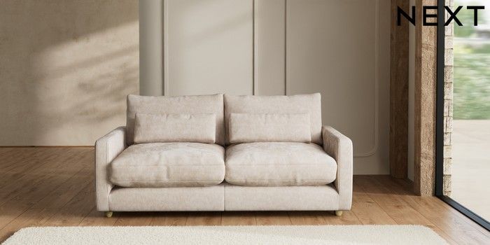 7.2.6 Buy N Premium Farndon Grand Relaxed Sit 3 Seater Sofa Distressed Velour Mid Natural Wooden Glide - Light from the Next UK online shop Click here to use our accessible website