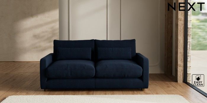 7.2.6 Buy N Premium Farndon Grand Relaxed Sit 3 Seater Sofa Fine Chenille Easy Clean Dark Navy Blue Wooden Glide - Mid from the Next UK online shop Click here to use our accessible website