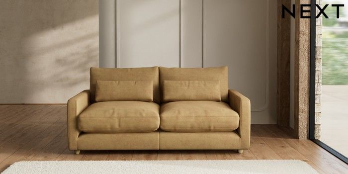 7.2.6 Buy N Premium Farndon Grand Relaxed Sit 3 Seater Sofa Luxe Chenille Honey Yellow Wooden Glide - Light from the Next UK online shop Click here to use our accessible website