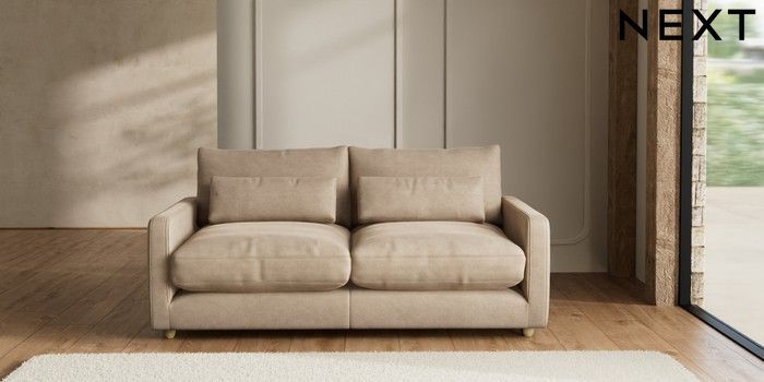 7.2.6 Buy N Premium Farndon Grand Relaxed Sit 3 Seater Sofa Luxe Chenille Mid Camel Beige Wooden Glide - Light from the Next UK online shop Click here to use our accessible website