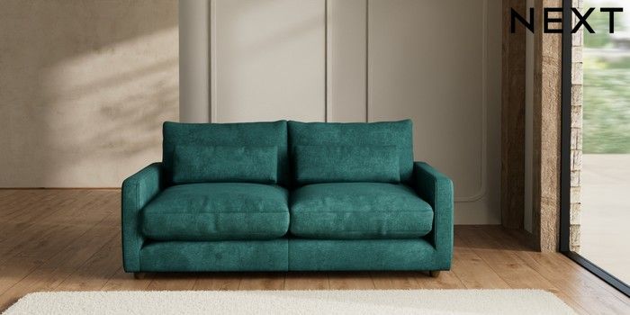 7.2.6 Buy N Premium Farndon Grand Relaxed Sit 3 Seater Sofa Plush Chenille Dark Teal Green Wooden Glide - Mid from the Next UK online shop Click here to use our accessible website