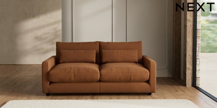 7.2.6 Buy N Premium Farndon Grand Relaxed Sit 3 Seater Sofa Ripple Chenille Mid Rust Brown Wooden Glide - Dark from the Next UK online shop Click here to use our accessible website