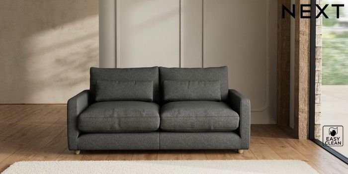 7.2.6 Buy N Premium Farndon Grand Relaxed Sit 3 Seater Sofa Tweedy Blend Easy Clean Charcoal Grey Wooden Glide - Light from the Next UK online shop Click here to use our accessible website