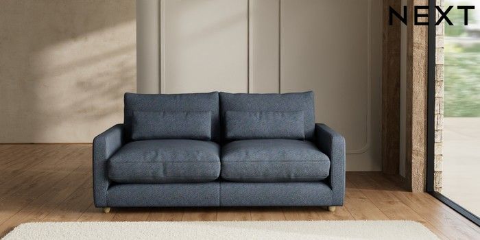 7.2.6 Buy N Premium Farndon Grand Relaxed Sit 3 Seater Sofa Tweedy Chenille Navy Blue Wooden Glide - Light from the Next UK online shop Click here to use our accessible website
