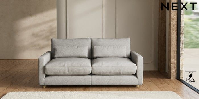 7.2.6 Buy N Premium Farndon Grand Relaxed Sit 3 Seater Sofa Woven Chenille Easy Clean Light Grey Wooden Glide - Light from the Next UK online shop Click here to use our accessible website