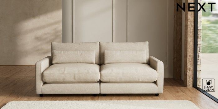 7.2.6 Buy N Premium Farndon Grand Relaxed Sit 4 Seater Sofa Boucle Weave Easy Clean Dark Natural Wooden Glide - Dark from the Next UK online shop Click here to use our accessible website