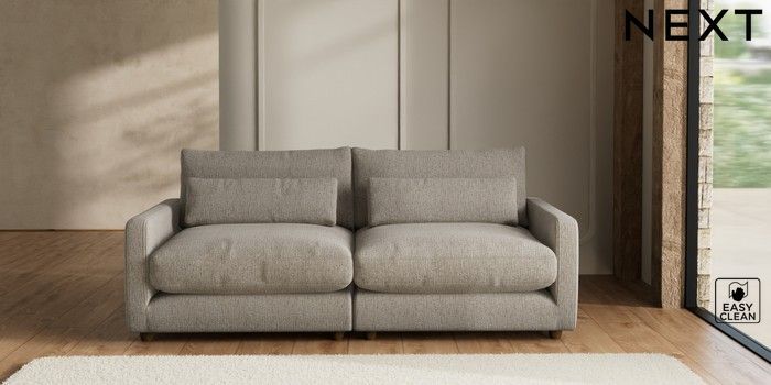 7.2.6 Buy N Premium Farndon Grand Relaxed Sit 4 Seater Sofa Chunky Boucle Easy Clean Dove Wooden Glide - Mid from the Next UK online shop Click here to use our accessible website