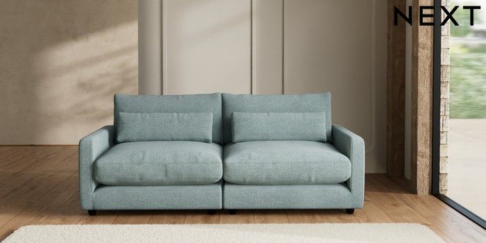 7.2.6 Buy N Premium Farndon Grand Relaxed Sit 4 Seater Sofa Chunky Chenille Light Teal Green Wooden Glide - Dark from the Next UK online shop Click here to use our accessible website