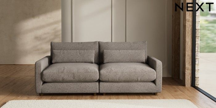7.2.6 Buy N Premium Farndon Grand Relaxed Sit 4 Seater Sofa Chunky Chenille Mink Brown Wooden Glide - Mid from the Next UK online shop Click here to use our accessible website