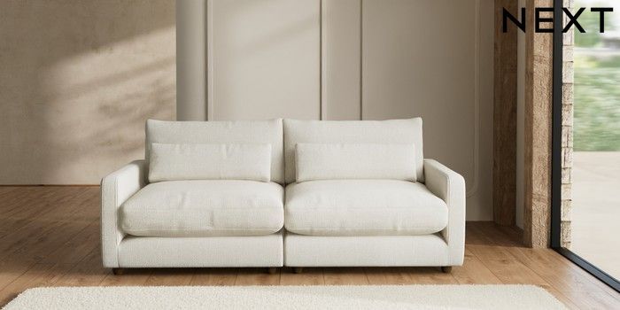 7.2.6 Buy N Premium Farndon Grand Relaxed Sit 4 Seater Sofa Chunky Texture Oyster Wooden Glide - Mid from the Next UK online shop Click here to use our accessible website