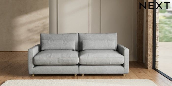 7.2.6 Buy N Premium Farndon Grand Relaxed Sit 4 Seater Sofa Chunky Weave Mid Grey Wooden Glide - Light from the Next UK online shop Click here to use our accessible website