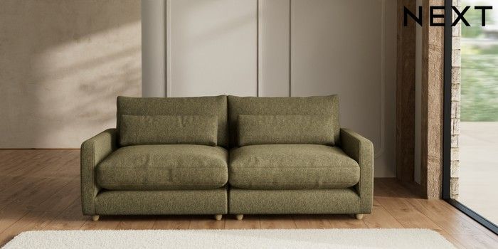 7.2.6 Buy N Premium Farndon Grand Relaxed Sit 4 Seater Sofa Cotswold Chenille Dark Green Wooden Glide - Light from the Next UK online shop Click here to use our accessible website