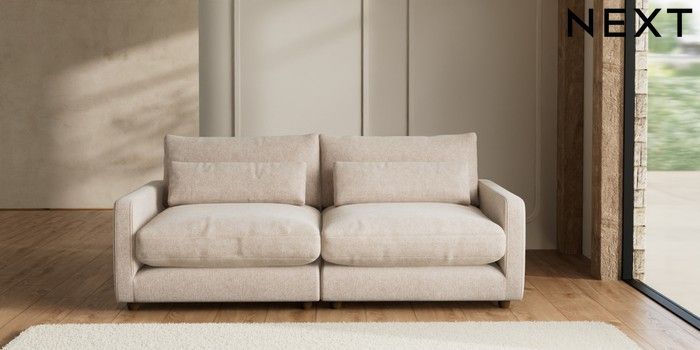 7.2.6 Buy N Premium Farndon Grand Relaxed Sit 4 Seater Sofa Cotswold Chenille Light Natural Wooden Glide - Mid from the Next UK online shop Click here to use our accessible website