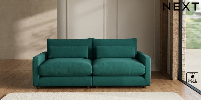 7.2.6 Buy N Premium Farndon Grand Relaxed Sit 4 Seater Sofa Fine Chenille Easy Clean Dark Juniper Green Wooden Glide - Mid from the Next UK online shop Click here to use our accessible website