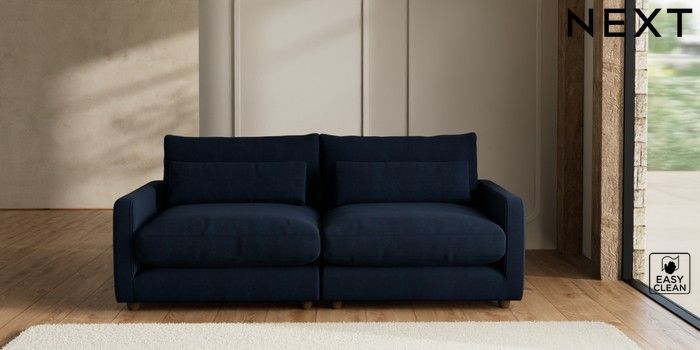 7.2.6 Buy N Premium Farndon Grand Relaxed Sit 4 Seater Sofa Fine Chenille Easy Clean Dark Navy Blue Wooden Glide - Mid from the Next UK online shop Click here to use our accessible website