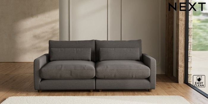 7.2.6 Buy N Premium Farndon Grand Relaxed Sit 4 Seater Sofa Fine Chenille Easy Clean Dark Smoke Grey Wooden Glide - Mid from the Next UK online shop Click here to use our accessible website