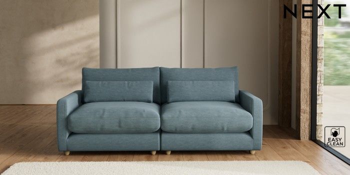7.2.6 Buy N Premium Farndon Grand Relaxed Sit 4 Seater Sofa Fine Chenille Easy Clean Mid Blue Wooden Glide - Light from the Next UK online shop Click here to use our accessible website