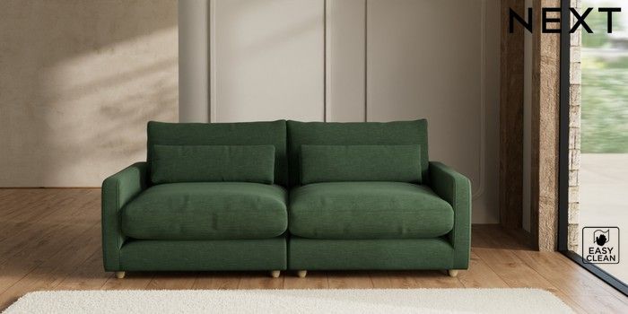 7.2.6 Buy N Premium Farndon Grand Relaxed Sit 4 Seater Sofa Fine Chenille Easy Clean Mid Khaki Green Wooden Glide - Light from the Next UK online shop Click here to use our accessible website