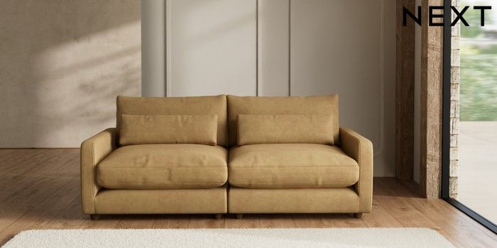 7.2.6 Buy N Premium Farndon Grand Relaxed Sit 4 Seater Sofa Luxe Chenille Honey Yellow Wooden Glide - Mid from the Next UK online shop Click here to use our accessible website